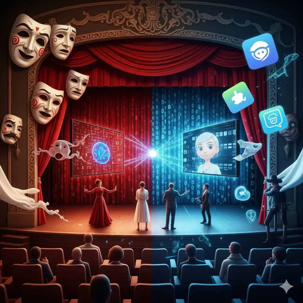 התיאטרון מציע חוויה תיאטרלית חיה וקולקטיבית שמנוגדת לבדידות הווירטואלית, כולל חיבור רגשי מיידי בין שחקנים לקהל, שמערב את כל החושים ומחזק קהילה משותפת – דברים שאינם קיימים בבידור דיגיטלי.
